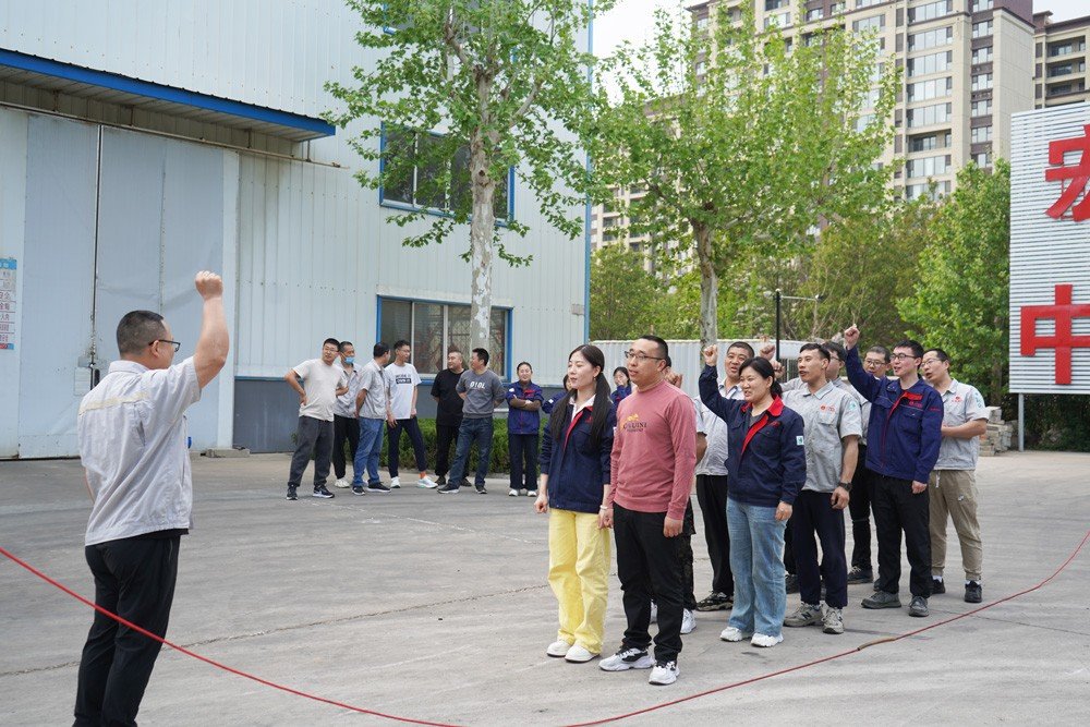 本次跳繩比賽共五支隊伍,分別是南樓辦公室、北樓辦公室、智能生產(chǎn)部、直管生產(chǎn)部、盤管生產(chǎn)部。戰(zhàn)前宣誓環(huán)節(jié),各隊隊長振臂高呼,隊員們聲浪如潮,整個賽場沸騰著宏泰人永不言敗的熱血!